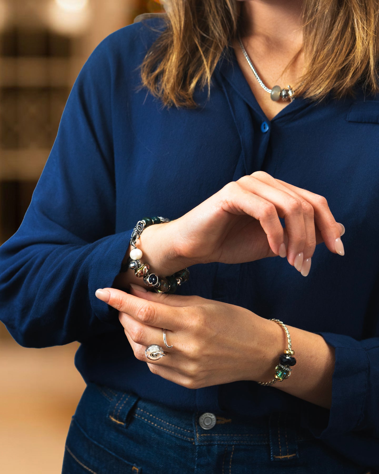 Generell empfehlen wir dir, den Kontakt mit Parfüms, Cremes (auch Handcremes), Seifen, Kosmetika und Haarlacken etc. zu vermeiden. Wie bereits erwähnt, dürfen deine Beads niemals mit chemischen Reinigungsmitteln oder Bleichmitteln in Kontakt kommen. Das bedeutet, dass dein Trollbeads-Schmuck als letzten Schritt angelegt werden sollten, wenn du mit all deinen Schönheitslotionen und -ritualen fertig bist.