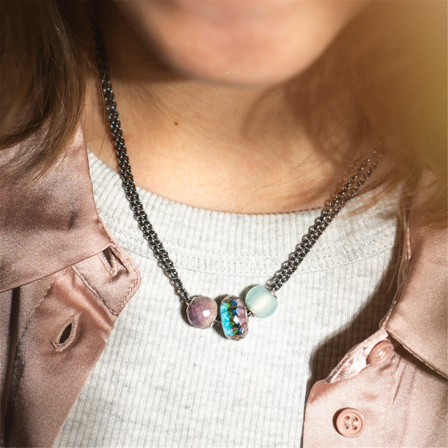 Generell empfehlen wir dir, den Kontakt mit Parfüms, Cremes (auch Handcremes), Seifen, Kosmetika und Haarlacken etc. zu vermeiden. Wie bereits erwähnt, dürfen deine Beads niemals mit chemischen Reinigungsmitteln oder Bleichmitteln in Kontakt kommen. Das bedeutet, dass dein Trollbeads-Schmuck als letzten Schritt angelegt werden sollten, wenn du mit all deinen Schönheitslotionen und -ritualen fertig bist.