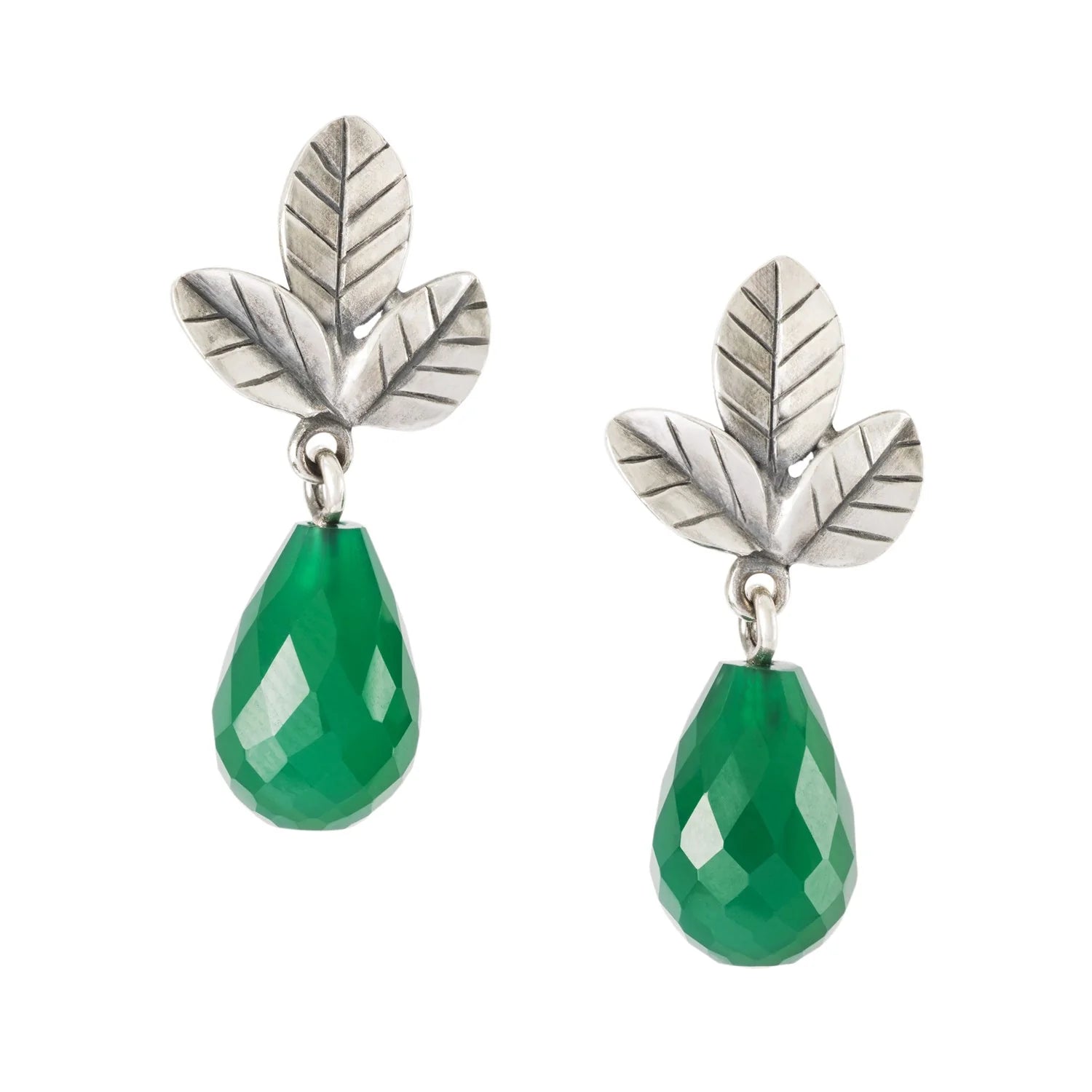 Grüne Träume Set bestehend aus Blätter der Gelassenheit Ohrstecker mit grünem Onyx, Traumhafte Gelassenheit Collier und Basisverschluss.